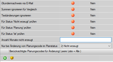 Nicht erzeugt = Es wird nur im Status "Nicht erzeugt" auf die folgenden Planungscodes geprüft, Dienständerungen werden im "nicht erzeugt" nicht geschickt. Dienständerungen werden aber im Status "Planung" und "Ist" auch weiterhin geschickt.