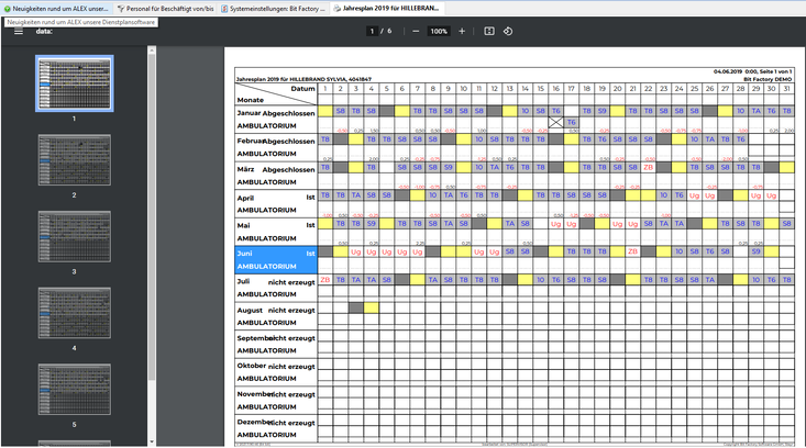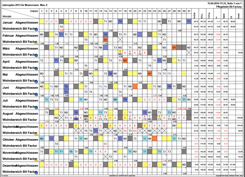 Der Jahresplan dient damit auch als Einzeldienstplan.
