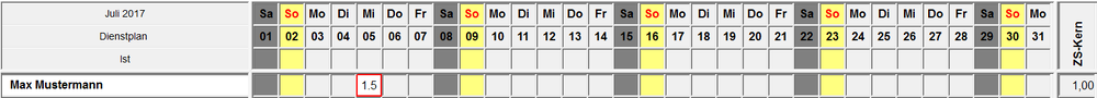 Bsp. T Dienst Sollzeit: 08:00-13:00 Uhr u. 13:30-16:00 Uhr Mitarbeiter stempelt von 09:00-15:30 Uhr --> Kernzeitverletzung am Tag