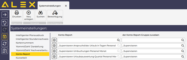 Es lassen sich gleich mehrere Zeitkonten zum Konto-Report hinzufügen. Hierfür rechts neben gewünschten Zeitkonten auf das Plus klicken.