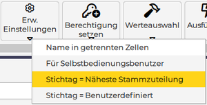 Hat der Mitarbeiter zu diesem Stichtag keine gültigen Parameter, so bleiben diese Stammdaten leer. Es gibt jedoch weitere Einstellungsmöglichkeiten, um den relevanten Stichtag der Stammdaten zu definieren.