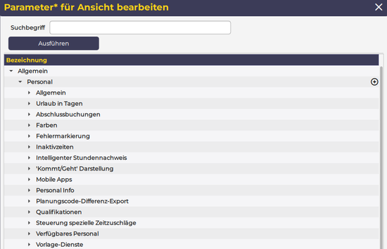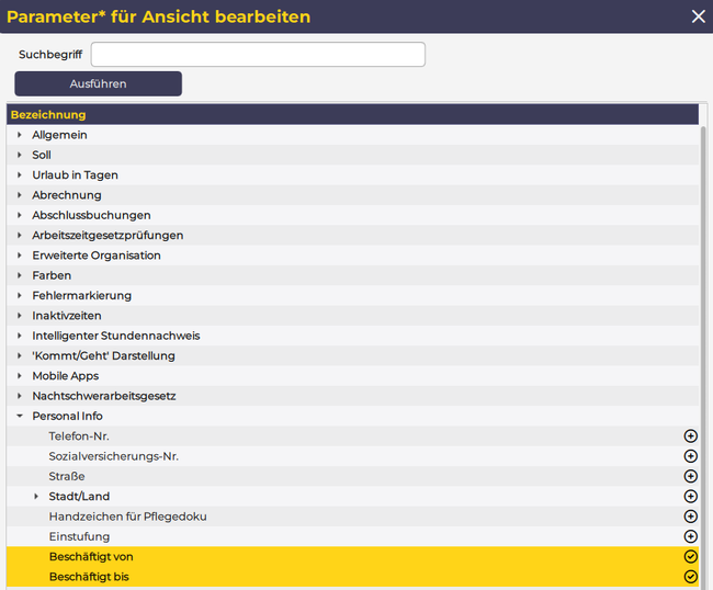 Anschließend sind alle Parameter, welche auch beim Personalstamm zur Verfügung stehen, auswählbar:
