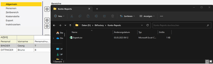 Das Ergebnis eines Konto-Reports lässt sich für eine weitere Bearbeitung in weiterführenden System exportieren.