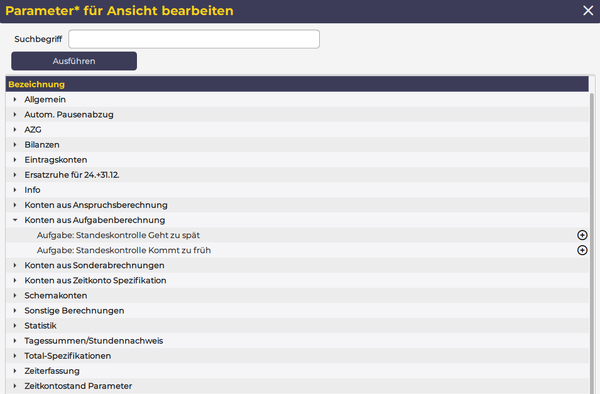 Aus Abrechnung Bietet eine Suchfunktion für alle Zeitkonten.