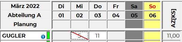 • Der Dienst "11" ist im Dienstplan der Abteilung A eingetragen