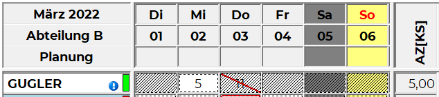 • Der Dienst "5" ist im Dienstplan der Abteilung B eingetragen