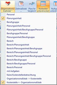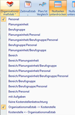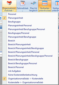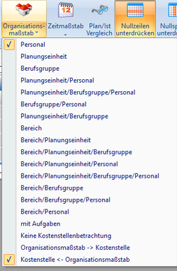 Wird diese Option ausgewählt, so wird pro Kostenstelle die Stunden des Organisationsmaßstabes dargestellt: