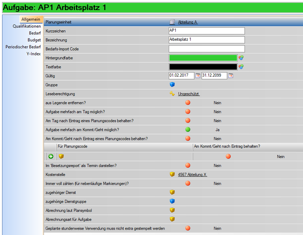 Werden die Kostenstellen pro Aufgabe hinterlegt, so muss die jeweilige Aufgabe eingetragen sein.
