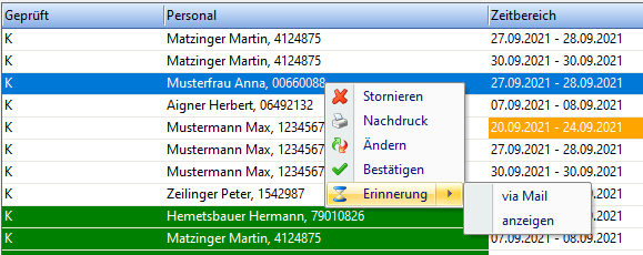 grün: Bestätigung wurde vom Mitarbeiter übermittelt |