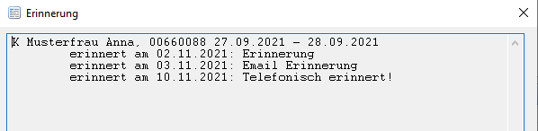 Diese Erinnerungen werden auch protokolliert bzw. kann die letzte Erinnerung auch als eigene Spalte "zuletzt erinnert am" angezeigt werden: