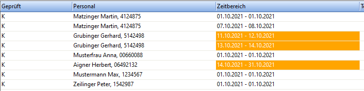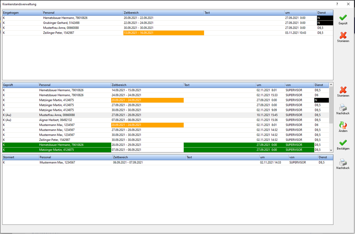 - "Geprüft": Sobald die eingetragenen Krankenstände vom zuständigen Bearbeiter geprüft wurden, wechseln diese in den mittleren Bereich.