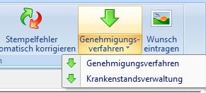 Ähnlich des Genehmigungsprozesses werden die eingetragenen Krankenstände je nach Bearbeitungsverlauf in unterschiedlichen Segmenten angezeigt: