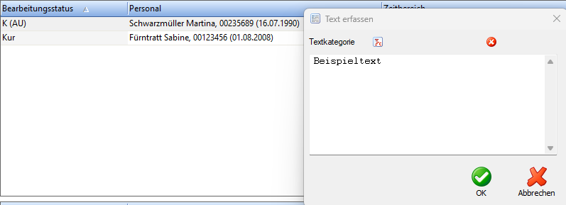 Über ein eigenes Menü "Text erfassen" kann ein Freitext erfasst werden, welcher veränderbar bleibt und somit jederzeit wieder geändert oder gelöscht werden kann.