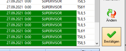 - "Bestätigt": Ein Zusatzmerkmal des mittleren Bereichs ist die Markierung einer schriftlichen Bestätigung (hier: grün hinterlegt).
