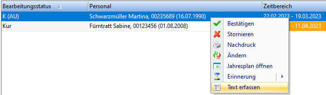 Eine schriftliche Krankenstandsbestätigung des Mitarbeiters kann mit einer eigenen Funktion erfasst werden. Bestätigte Krankenstände werden farblich markiert und nach unten gereiht - quasi formal als beendet markiert und aus dem Bearbeitungsfokus des Krankenstands-Bearbeiters genommen.