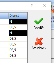 | Auswahl im Systemmenü | Auswahl im Dienstplan |