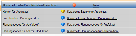 Folgende Einstellungen müssen in der Gruppe "Kurzarbeit" auf den Systemeinstellungen getroffen werden: