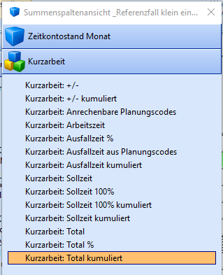 Grundsätzlich eine eigene Summenansicht “_Kurzarbeit” anlegen.