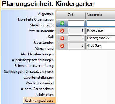"Lieferanten": Jene Planungsheinheit, die hier hinterlegt ist, generiert Rechnungen. Z.B.: Die Mitarbeiter des "Bauhof ÜP" erbringen Leistungen für das Amtsgebäude, welche auch an das Amtsgebäude verrechnet werden. Durch diese Hinterlegung wird eine Poolverleihung ausgelöst. Jene Mitarbeiter, die eine Tätigkeit für das Amtsgebäude erbringen, werden auf den Amtsgebäude-Plan poolverliehen. Diese Leistungen sind dann auf der Rechnung für das Amtsgebäude gesammelt ersichtlich. Hier können auch mehrere Lieferanten hinterlegt werden.