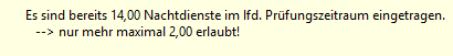 • maximale Anzahl ND im Prüfungszeitraum (Warnung): 12 Nachtdienste