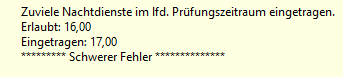 • maximale Anzahl ND im Prüfungszeitraum (Fehler): 16 Nachtdienste