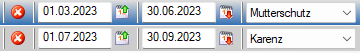 Gibt man ein Enddatum bei der Karenz oder Sonstige Inaktivzeit ein, so wird automatisch wieder eine Urlaubszeile angelegt und der Mitarbeiter auf die letzte Stamm-Planungseinheit zugeteilt.