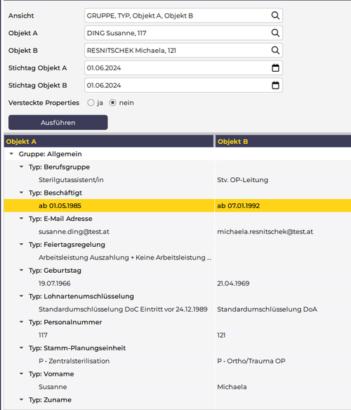 - Die Berechnung kann unterschiedlich sein, wenn der Stichtag eines Parameters nicht korrekt gesetzt ist. Objekte vergleichen ermöglicht es Unterschiede schnell hervorzuheben.