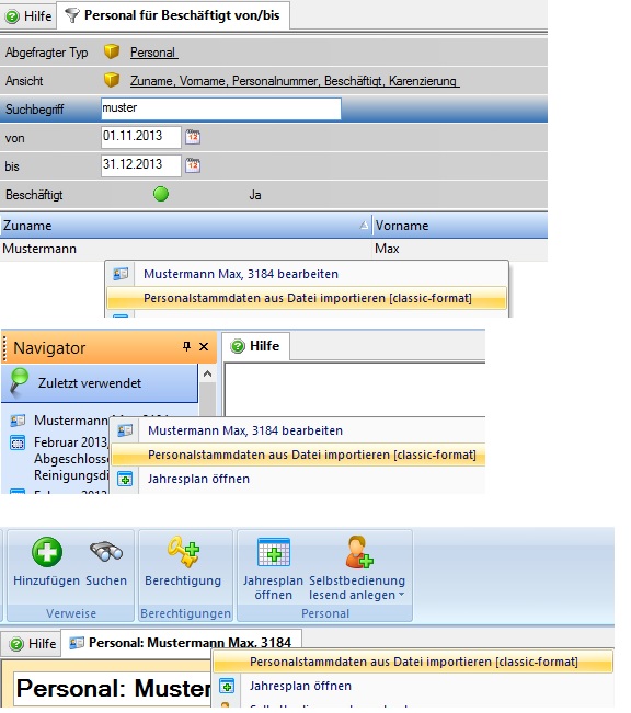 Rechtsklick auf einen gesuchten Mitarbeiter - Personalstammdaten aus Datei importieren [classic-format]
