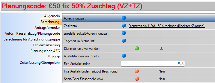 - Werden diese Planungscodes an Sonn-/Feiertagen verwendet, so muss abgeklärt werden wie die Zulagen berechnet werden müssen!