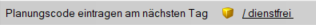 Bei den allgemeinen Einstellungen eines Dienstes kann ein Planungscode hinterlegt werden, welcher am Folgetag eingetragen werden soll.