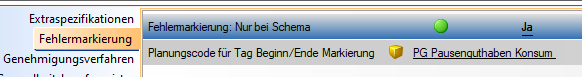 Der Planungscode für die Eintragung kann in der Gruppe "Fehlermarkierung" beim Parameter "Planungscode für Tag Beginn/Ende Markierung" hinterlegt werden.
