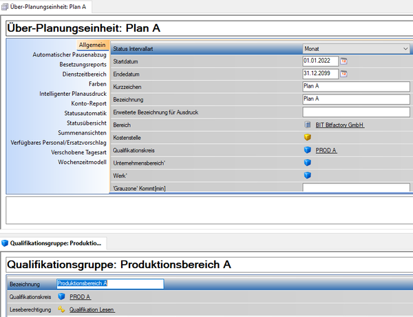 - Der gleiche Qualifikationskreis muss bei der Planungseinheit und bei der Qualifikationsgruppe hinterlegt sein
