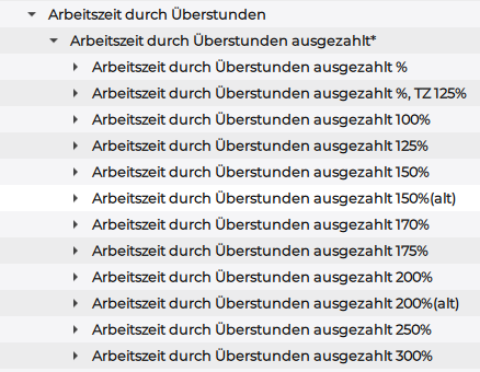 Diese Gruppe enthält alle Abrechnungsschemen der Schematypen "Arbeitszeit durch Überstunden ausgezahlt"