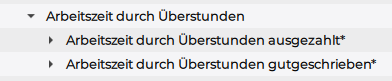 | Struktur "Arbeitszeit durch Überstunden gutgeschrieben* |