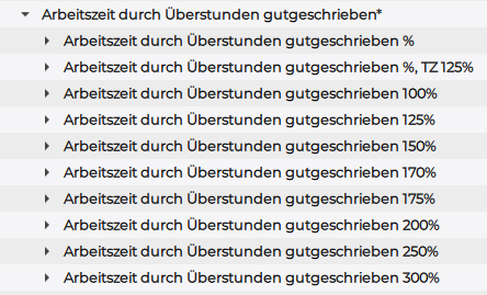 Diese Gruppe enthält alle Abrechnungsschemen der Schematypen "Arbeitszeit durch Überstunden gutgeschrieben":