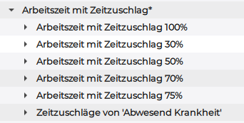 Untergruppen "Arbeitszeit mit Zeitzuschlag*"