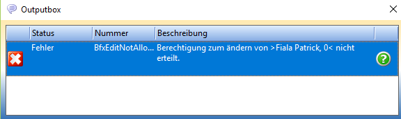 - Über die Personalsuche können die Mitarbeiter gesucht werden. Mit Doppelklick auf den Mitarbeiter erscheint folgende Meldung: