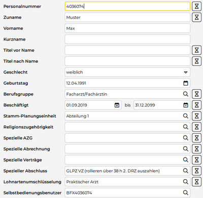 Bei zukünftiger Neuanlage eines Personals wird ebenfalls ab "Ausführen" bzw. "Speichern" sofort ein Selbstbedienungsbenutzer angelegt, sofern die Felder "Personalnummer" und "Zuname" bereits befüllt sind.