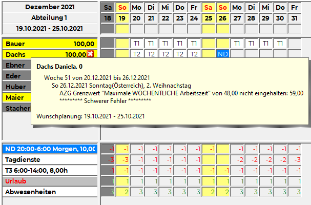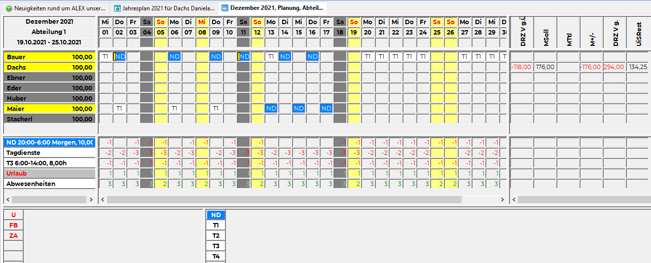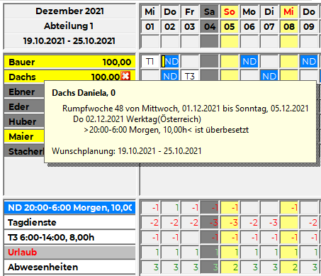 • Im linken oberen Eck des Plans ist ersichtlich, dass man auf diesem Plan für Dezember 2021 von 19.10 - 25.10.2021 seine Wünsche eintragen darf.