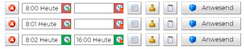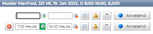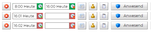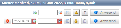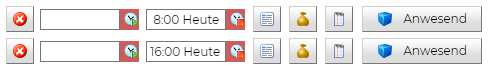 Spezielle Tätigkeiten oder Abwesenheiten (= Planungscodes) werden durch Klick auf die Schaltfläche „Anwesend“ ausgewählt.