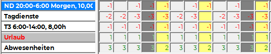 Kommt es aufgrund eines Diensteintrags zu einer "Überbesetzung", wird dies wie folgt angezeigt: