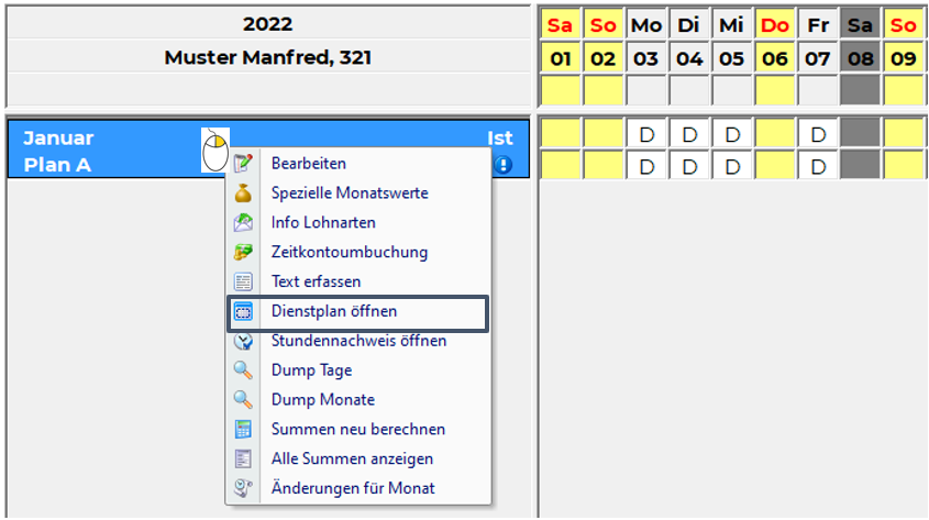 Der Dienstplan öffnet sich durch einen Klick auf diesen Eintrag: