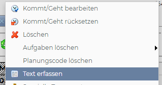 • stundenweise: Kommt-Geht-Fenster öffnen, Planungscode mit Uhrzeiten eintragen