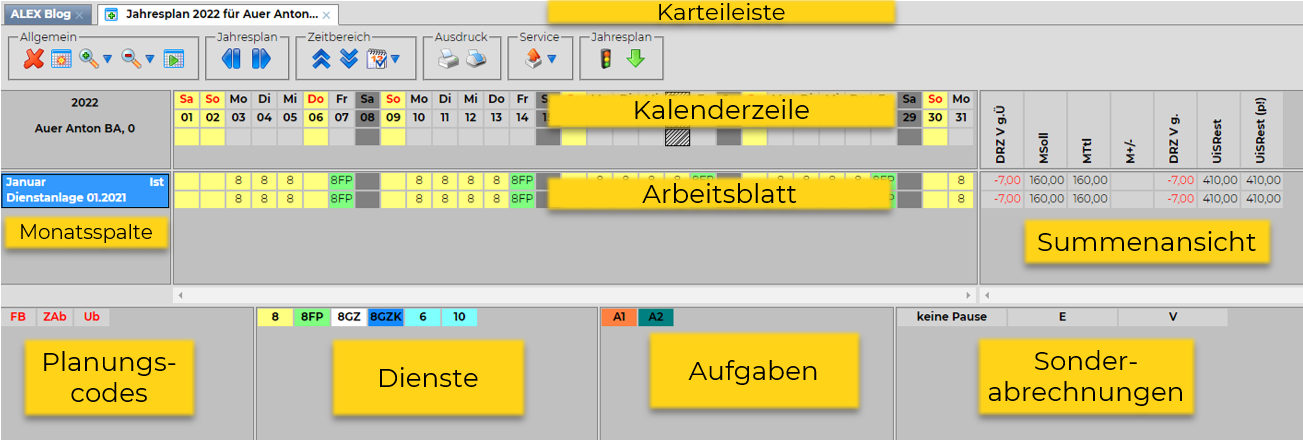 Dienste können wie folgt im Jahresplan eingetragen werden:
