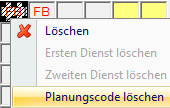 RECHTE-Maus-Klick auf den jeweiligen Tag im Planungsraster + "Planungscode löschen" löscht nur den Planungscode. Ein etwaiger Dienst, welcher unter dem Planungscode lag, bleibt erhalten