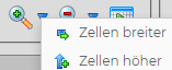 • „Zellen breiter“ bzw. „Zellen schmaler“: Auswahl erfolgt durch Klick auf den kleinen Pfeil neben „Zellen größer“ bzw. „Zellen kleiner“. Dienen zur Anpassung der Zellenbreite des Arbeitsblattes