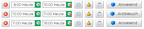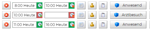 • Abwesenheitsstempelung (z.B. Arztbesuch) mit fehlender Ende/Beginn-Buchung des Planungscodes