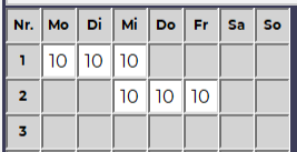 Bei der Ausfallberechnung laut Soll werden die Stunden ebenfalls aus dem hinterlegten Wochenzeitmodell herangezogen.