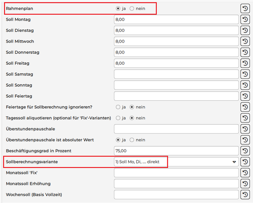 Bei der Sollstundenberechnung nach einem Rahmenplan ermittelt sich die vom Mitarbeiter erwartete Sollstundenverplichtung aus dem hinterlegten Wochenzeitmodell (= Rahmenplan).