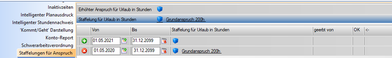 Im Navigator (Anpassungsansicht) "Staffelung für Anspruch": grünes Plus, um eine neue Staffelung anzulegen: